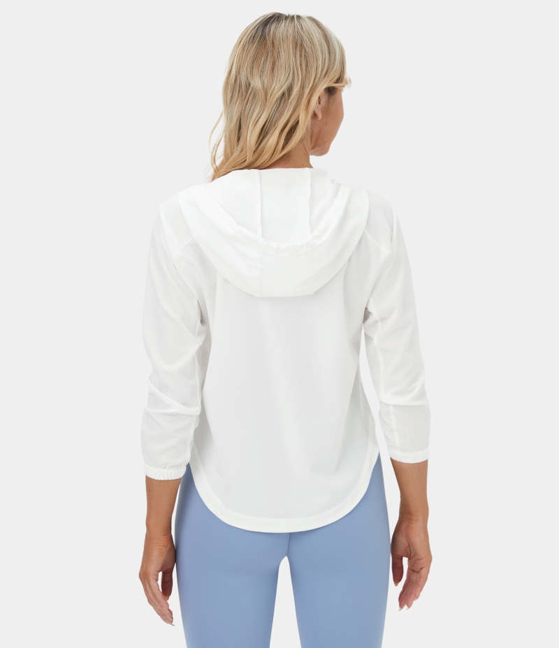 Halara Hooded Drawstring Zipper Side Pocket Curved Hem Yoga Jacket Women's Tops White | MBOQICR-63