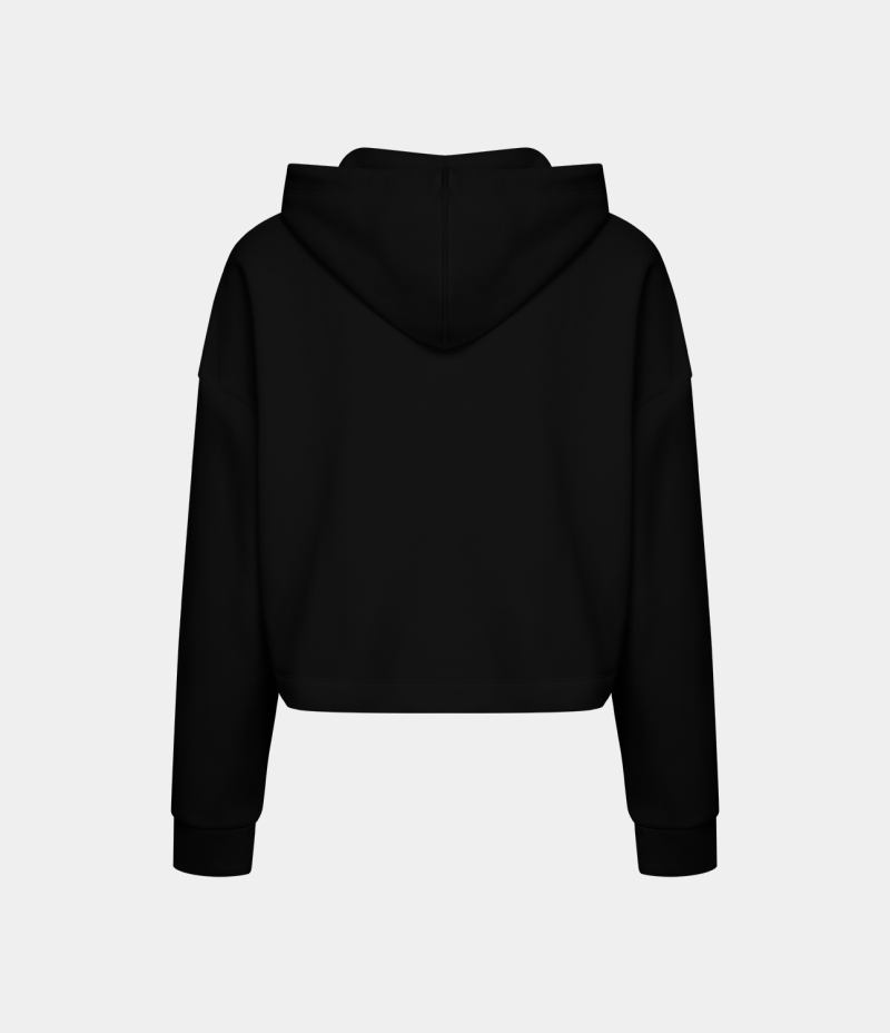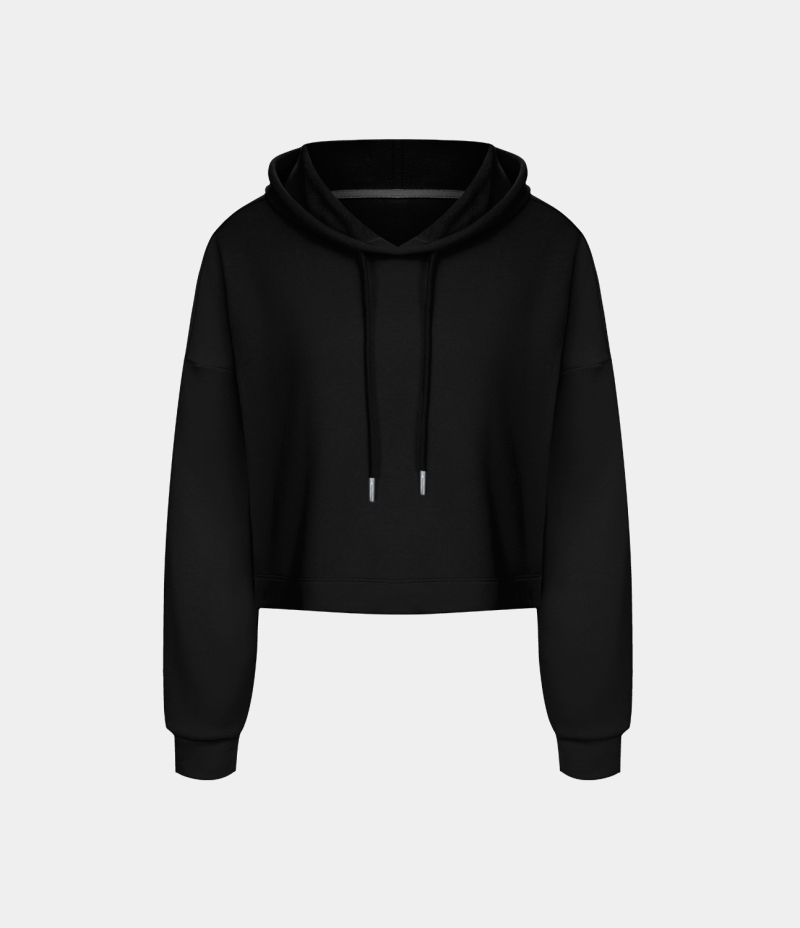:: Halara Hooded Dropped Shoulder Drawstring Cropped Fleece Casual Hoodie Sweatshirt Women's Tops Black | HWTCPQN-12