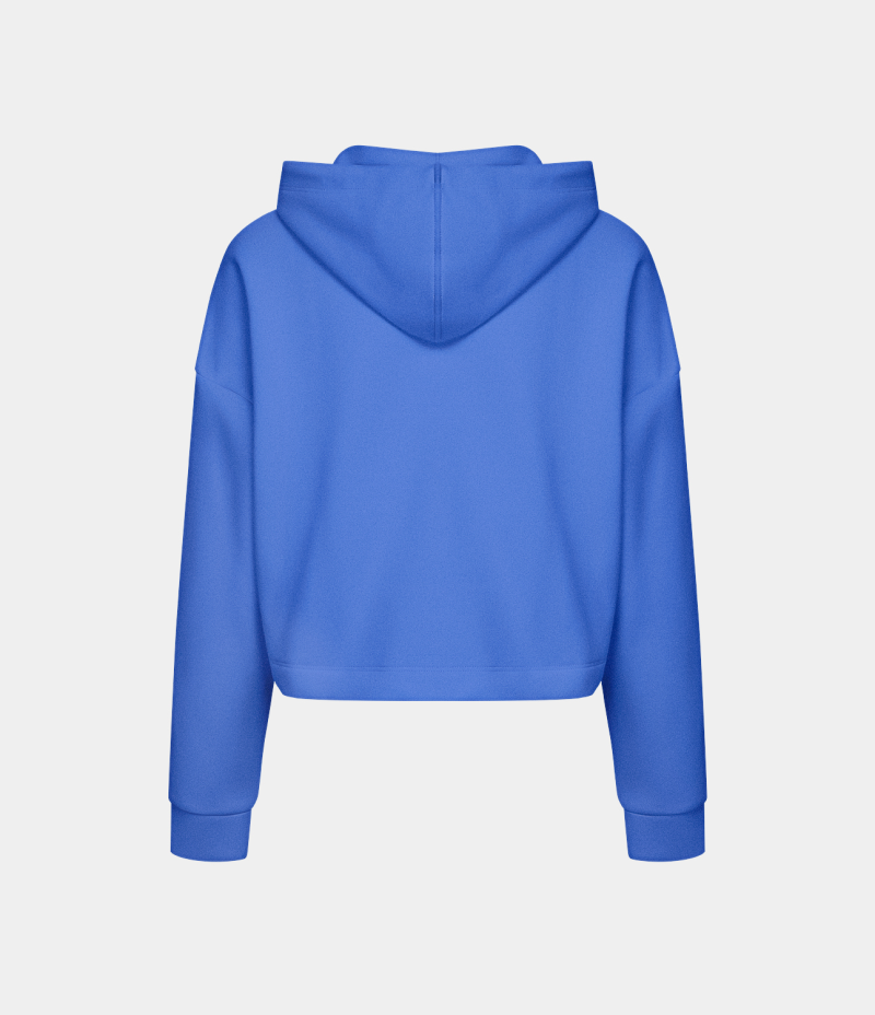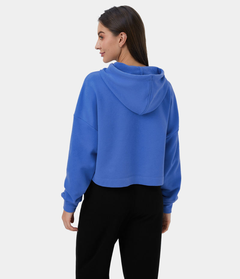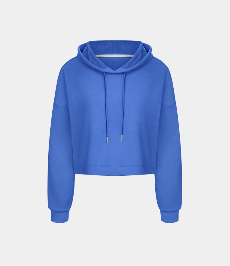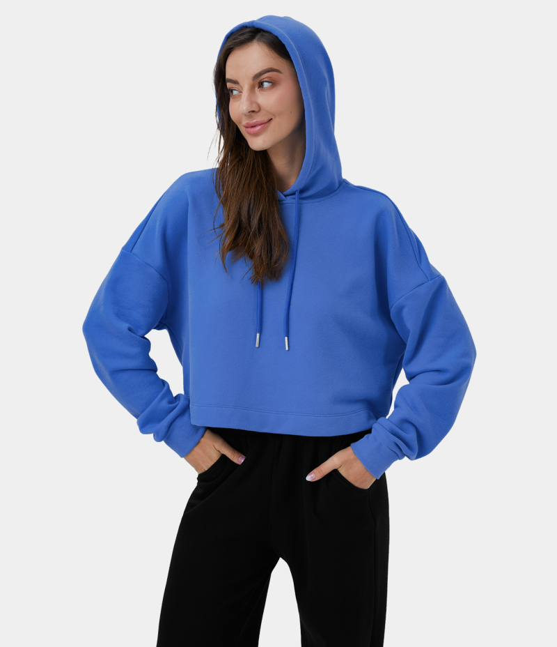 :: Halara Hooded Dropped Shoulder Drawstring Cropped Fleece Casual Hoodie Sweatshirt Women's Tops Klein Blue | EJIQSBN-58