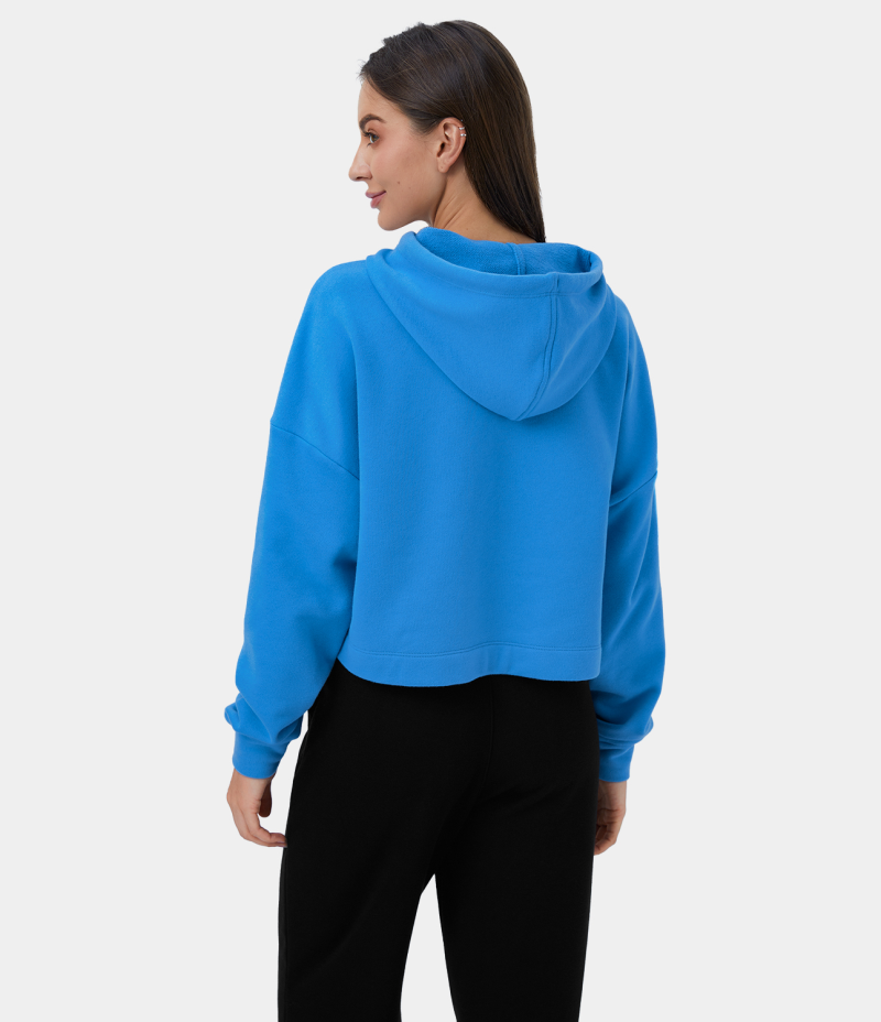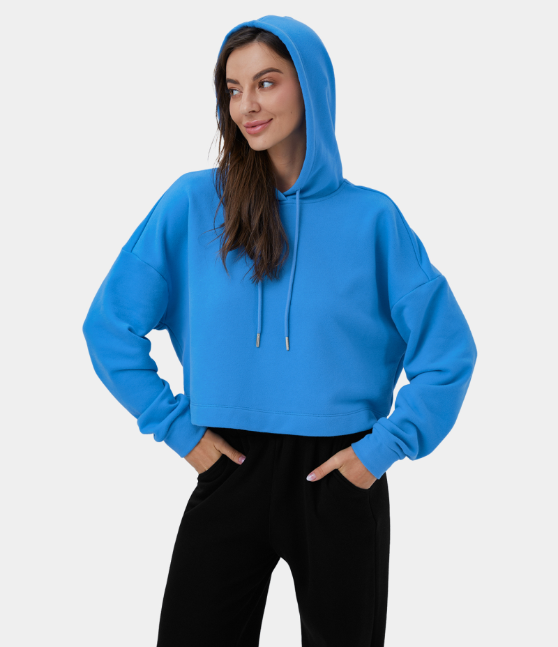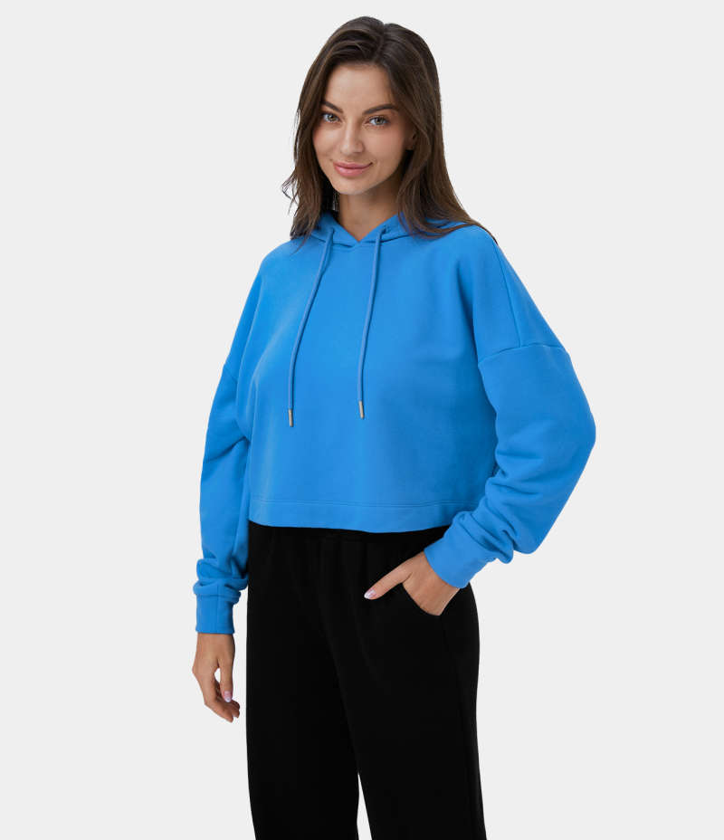Halara Hooded Dropped Shoulder Drawstring Cropped Fleece Casual Hoodie Sweatshirt Women's Tops Regatta | LESXUDJ-87