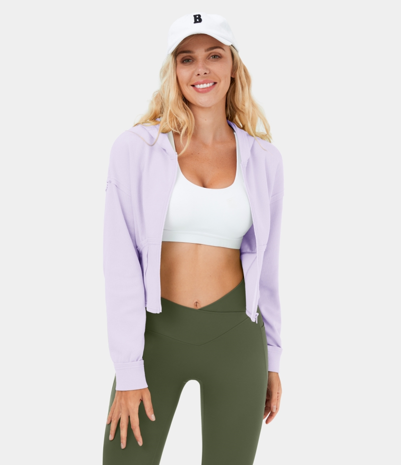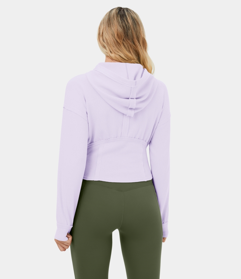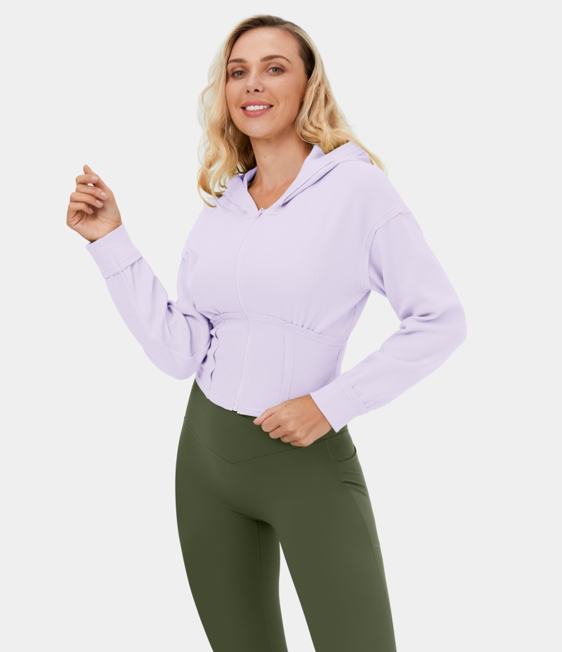 :: Halara Hooded Full Zip Corset Cropped Waffle Casual Hoodie Sweatshirt Women's Tops Orchid Tint | RDEQOVB-70