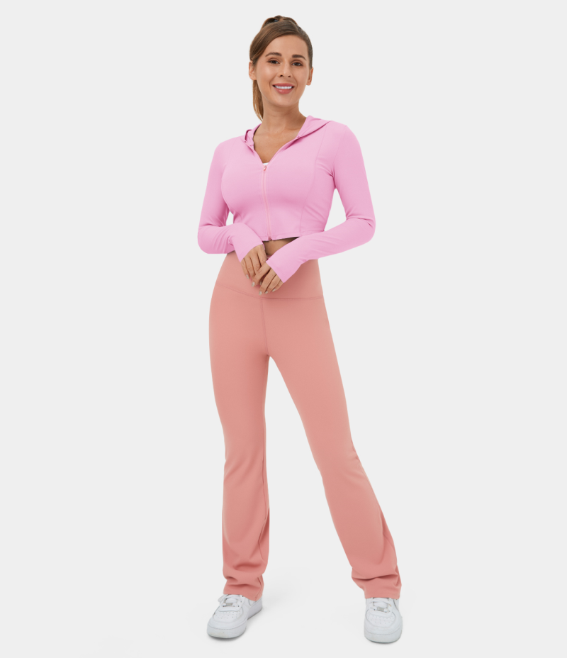 :: Halara Hooded Full Zip Cropped Yoga Jacket Women's Tops Pink Frosting | PQZKASX-59