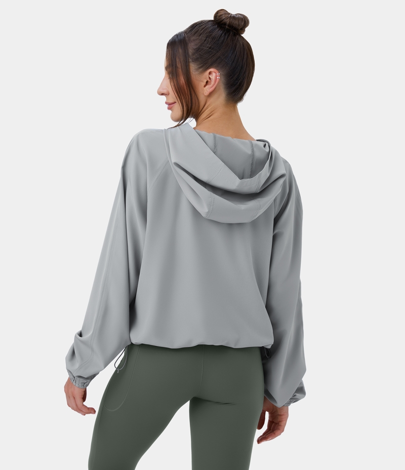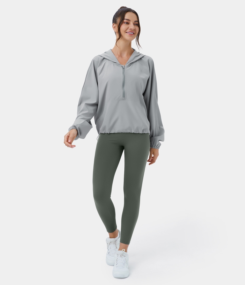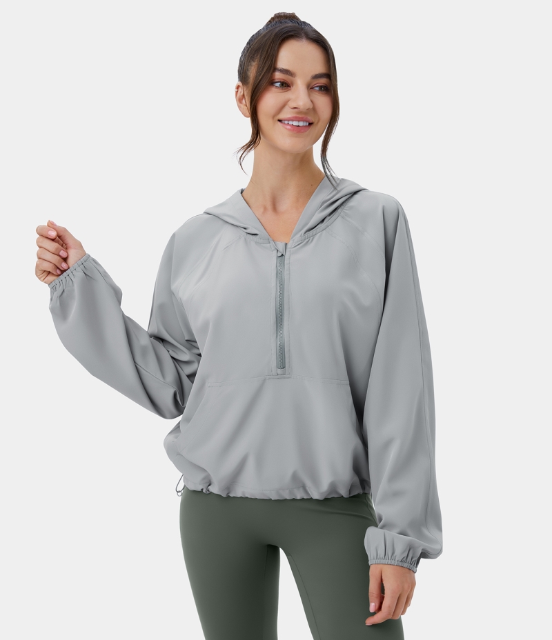 :: Halara Hooded Half Zip Kangaroo Pocket Drawstring Yoga Jacket Women's Tops Silver | WSUPKNI-03