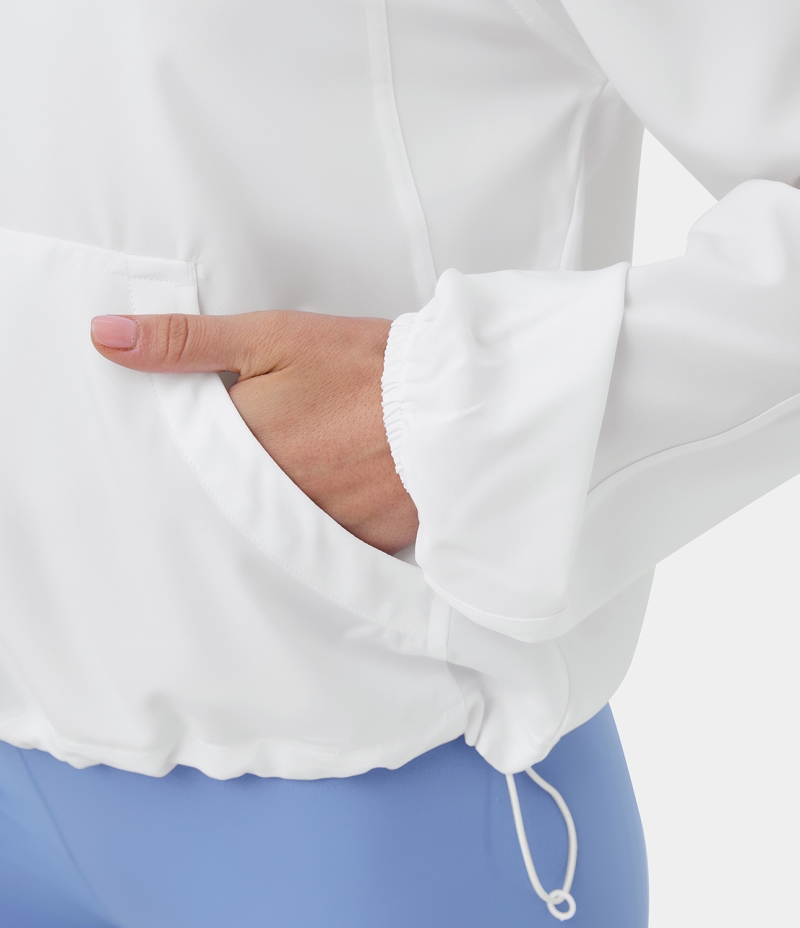 :: Halara Hooded Half Zip Kangaroo Pocket Drawstring Yoga Jacket Women's Tops White | HIBLTXS-36