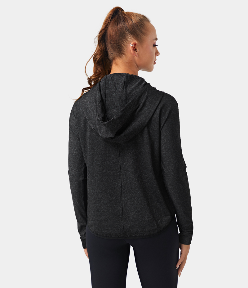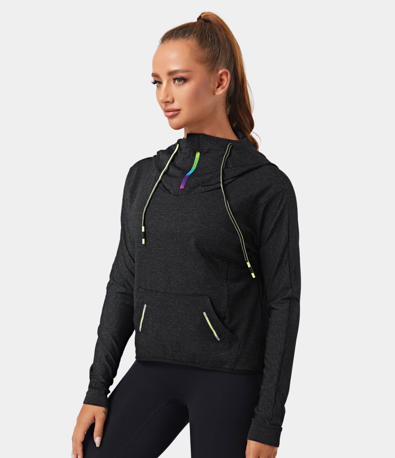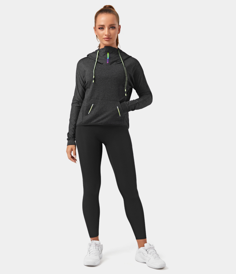 :: Halara Hooded Long Sleeve Kangaroo Pocket Sports Sweatshirt Women's Tops Dark Grey | QEJKHUR-79