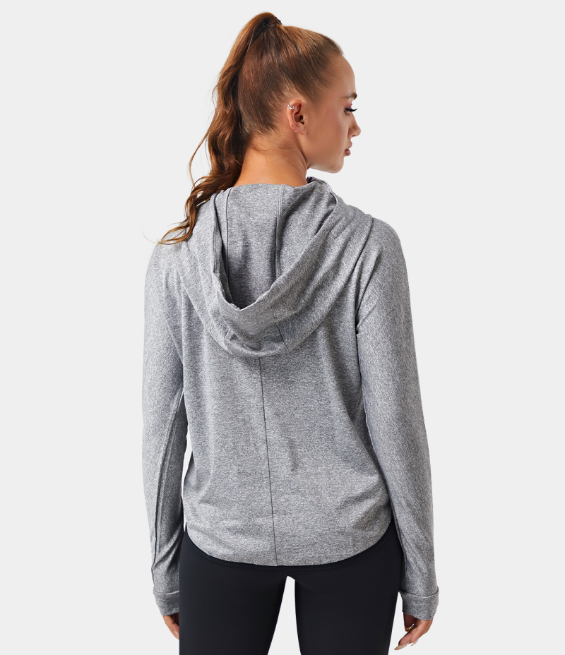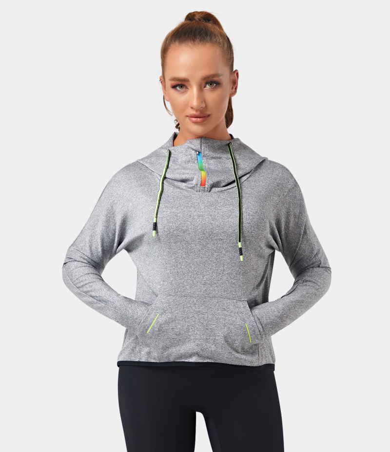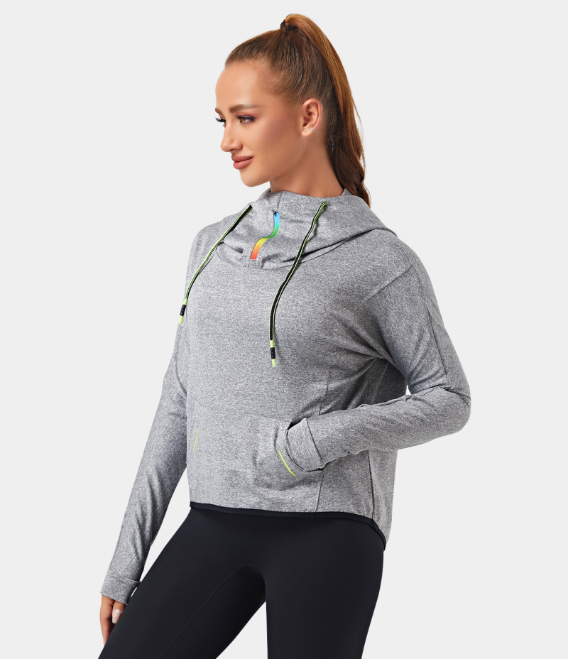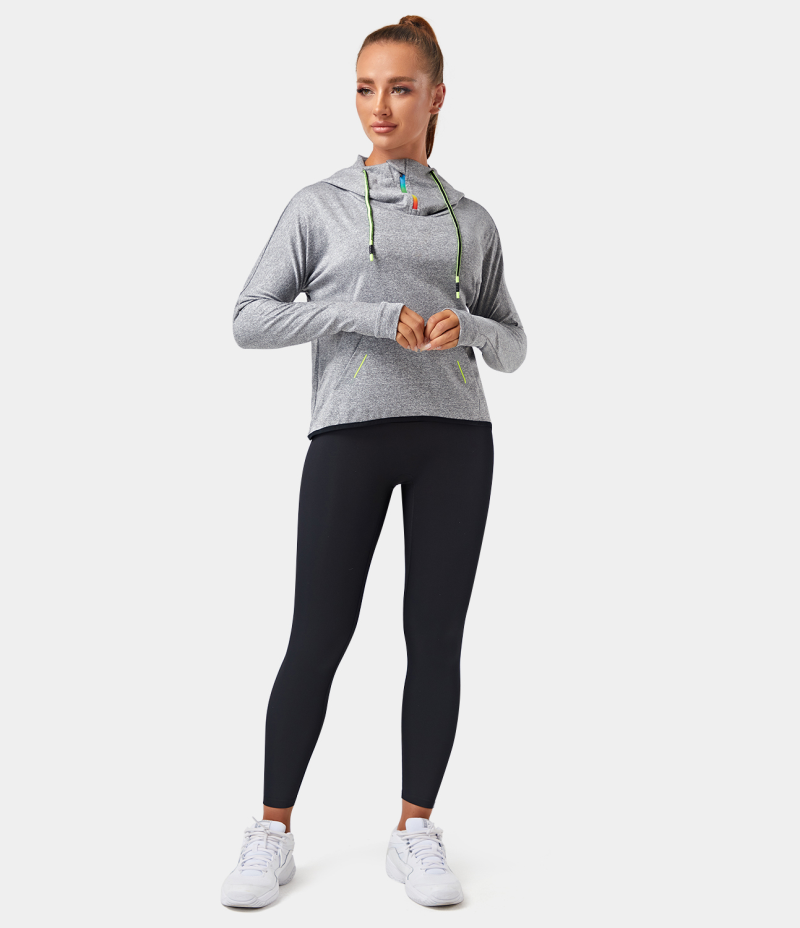 :: Halara Hooded Long Sleeve Kangaroo Pocket Sports Sweatshirt Women's Tops Sage Grey | UIGFYJQ-57