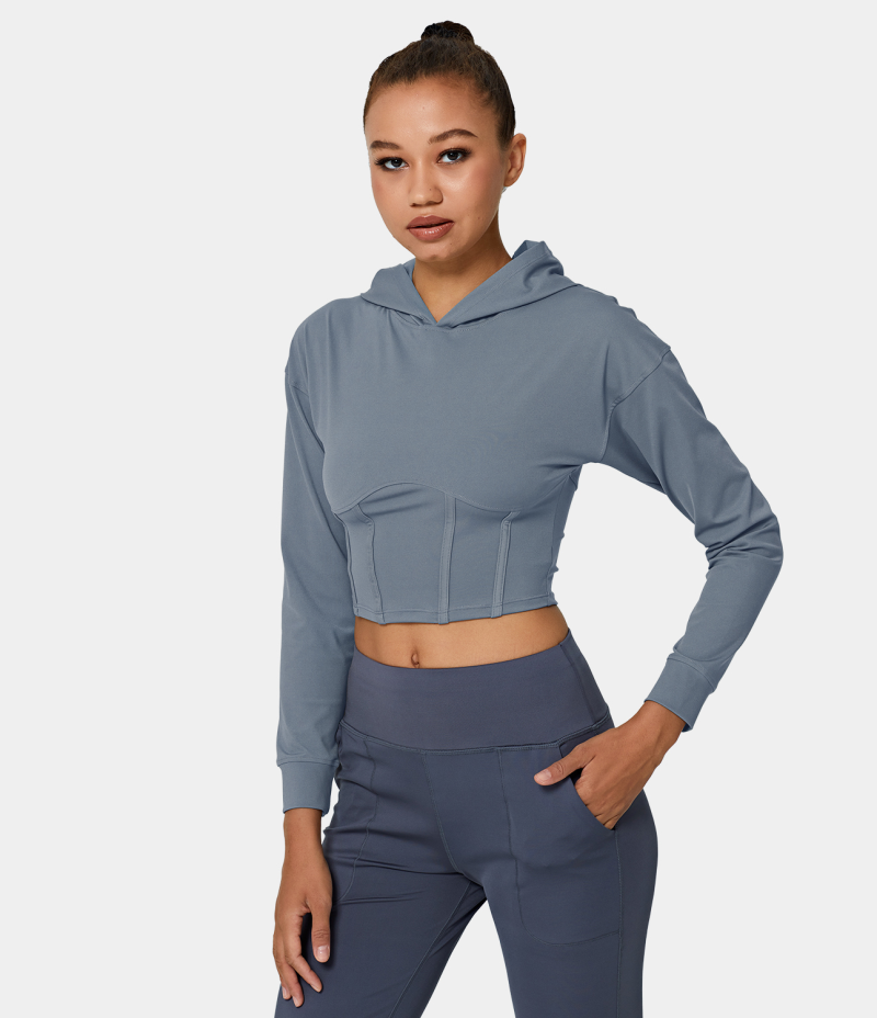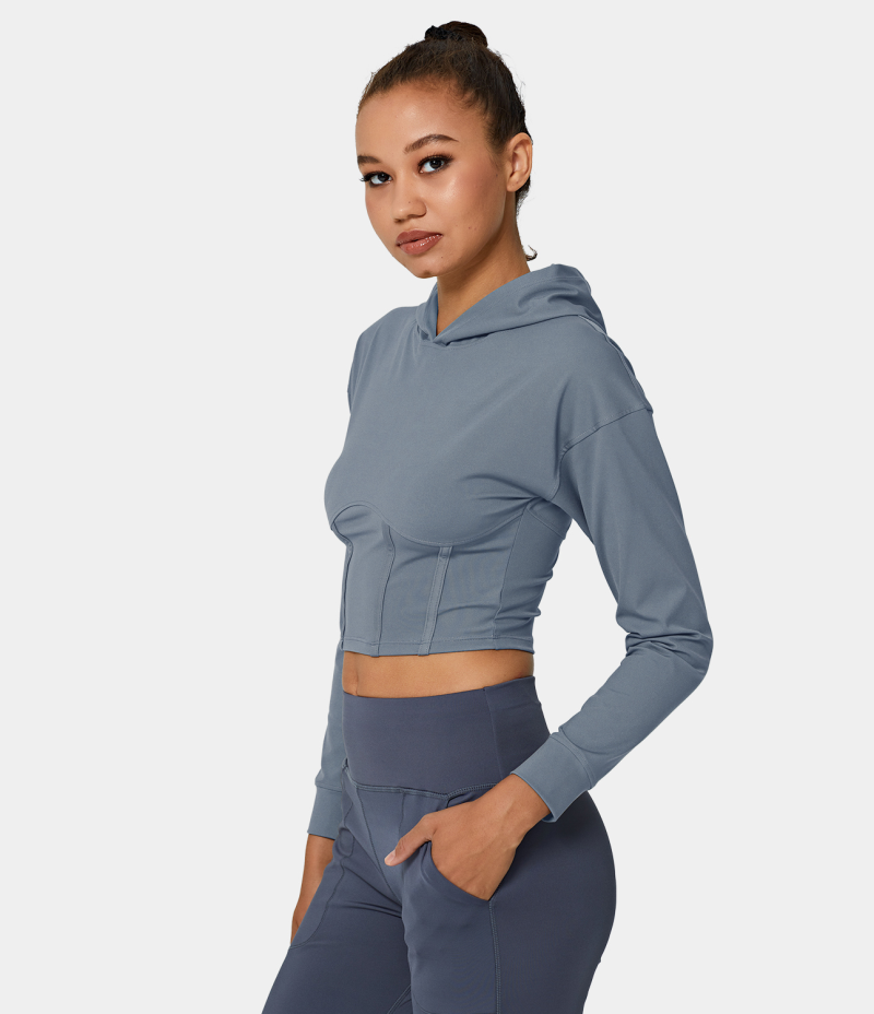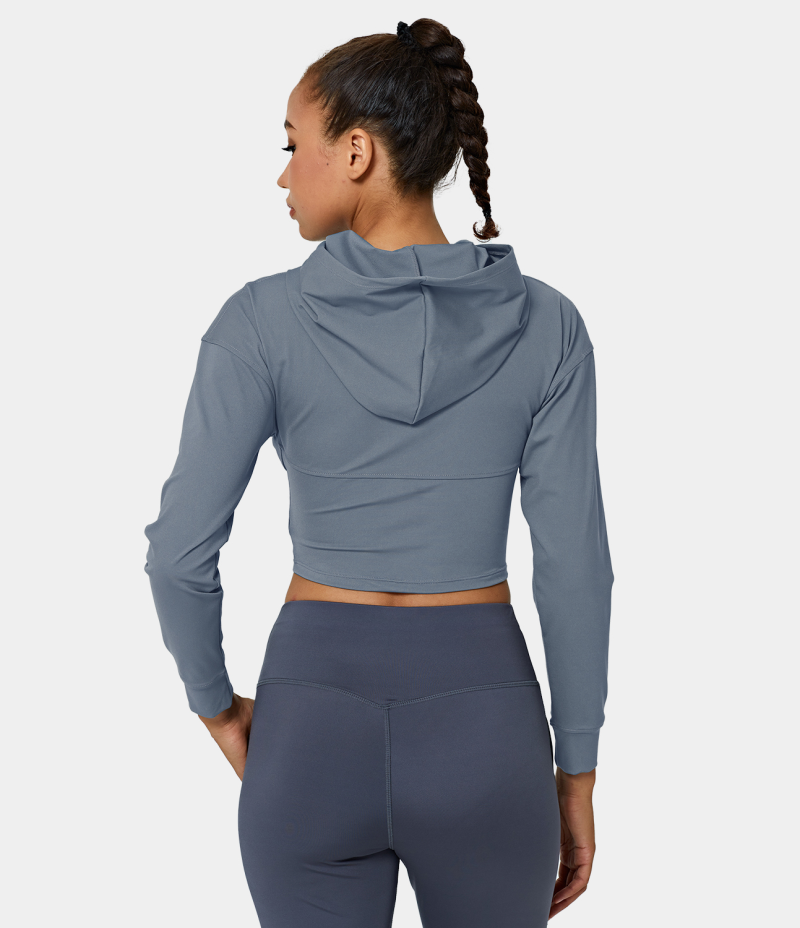 Halara Hooded Plain Cropped Sports Women's Tops Light Baby Blue | MRPKUGI-03