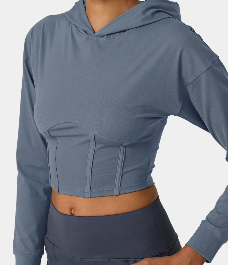 :: Halara Hooded Plain Cropped Sports Women's Tops Light Baby Blue | MRPKUGI-03