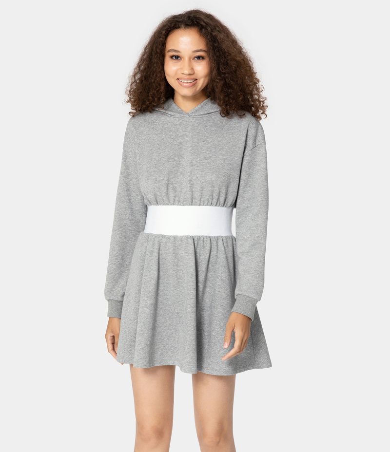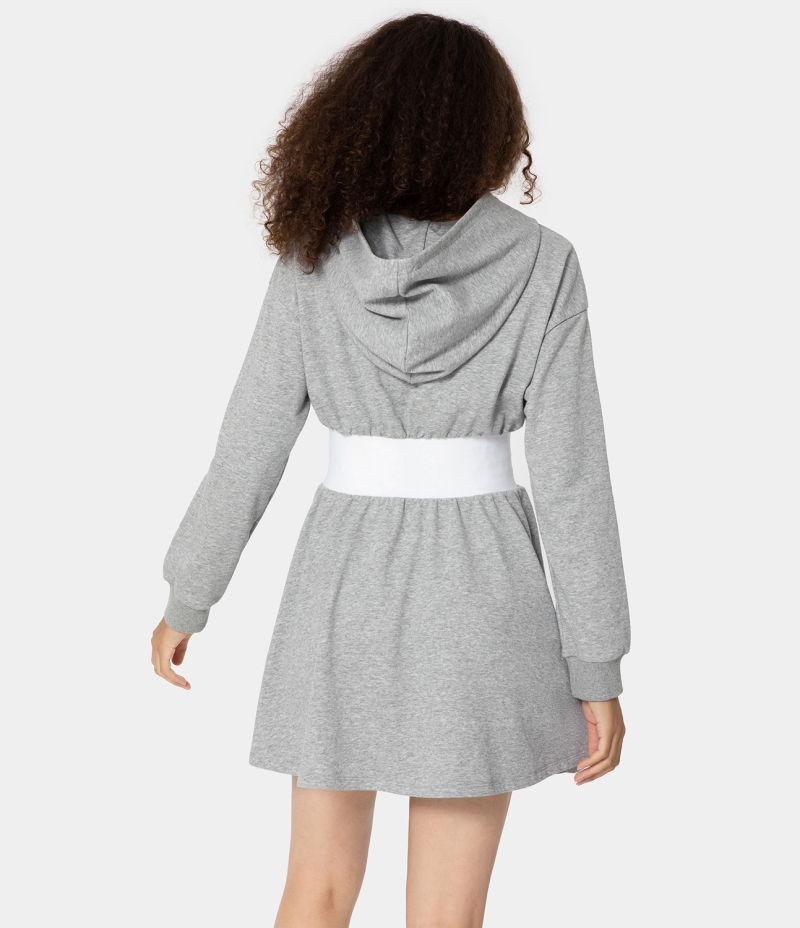 :: Halara Hooded Pocket Color Block 2-in-1 Mini Flare Women's Dress Porcelain White | 472561-VGE