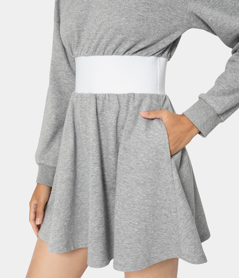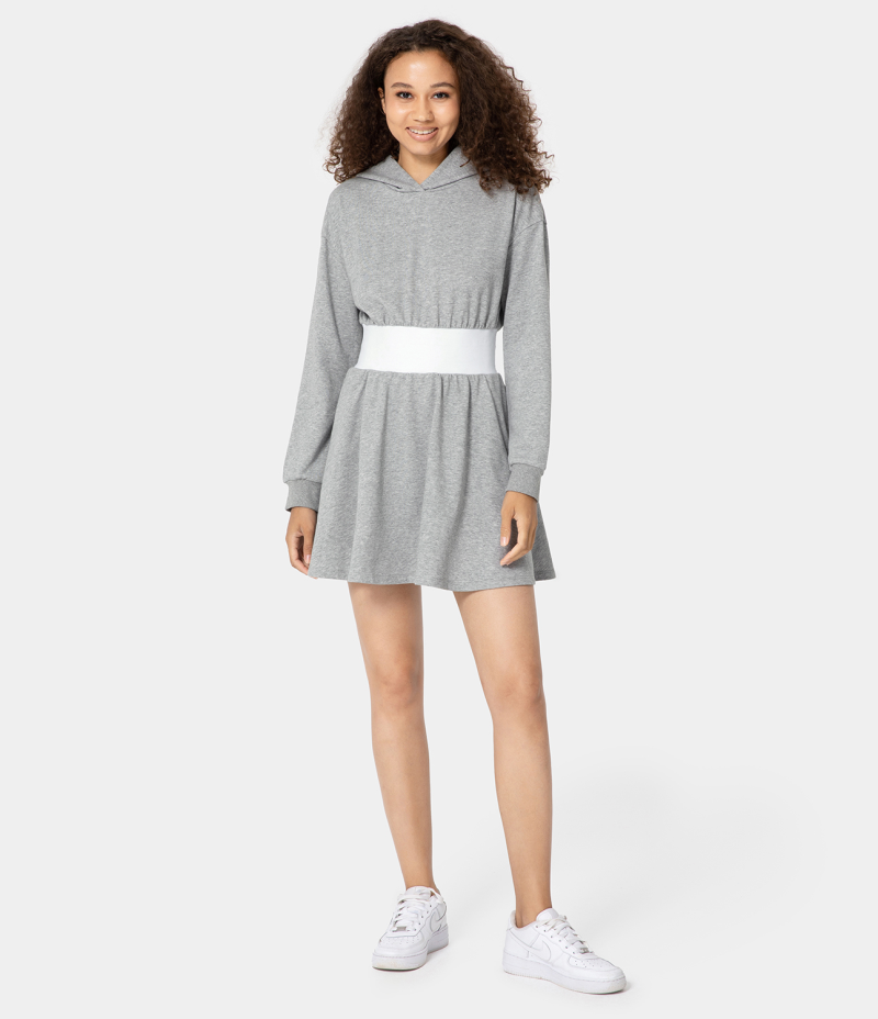 Halara Hooded Pocket Color Block 2-in-1 Mini Flare Women's Dress Porcelain White | 472561-VGE