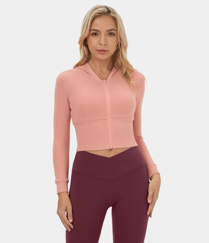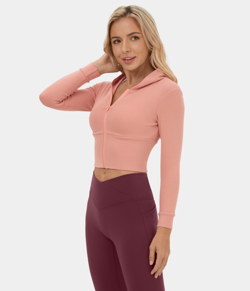 :: Halara Hooded Zipper Cropped Yoga Jacket Women's Tops Chintz Rose | IPZYVED-65