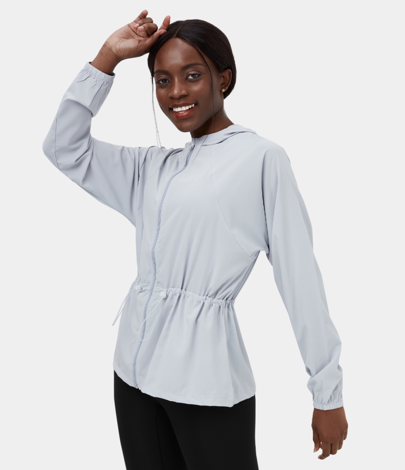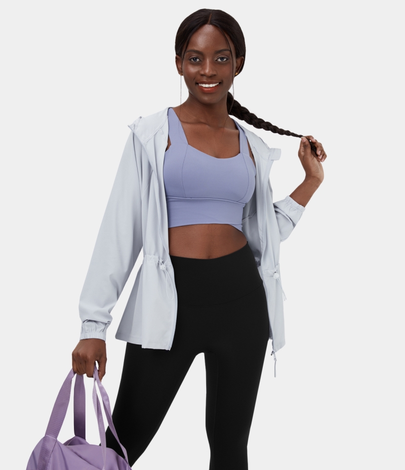 Halara Hooded Zipper Drawstring Casual Jacket Women's Tops Illusion Blue | RWOCKFT-02
