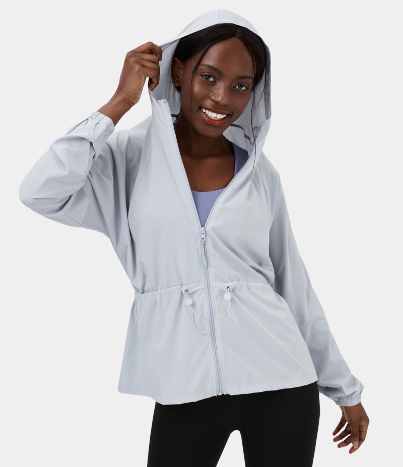 :: Halara Hooded Zipper Drawstring Casual Jacket Women's Tops Illusion Blue | RWOCKFT-02