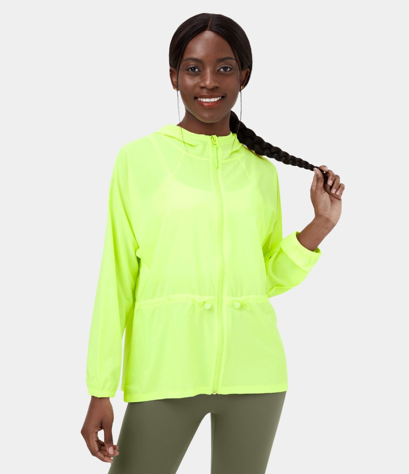 :: Halara Hooded Zipper Drawstring Casual Jacket Women's Tops Sunny Lime | CAXQFJL-61