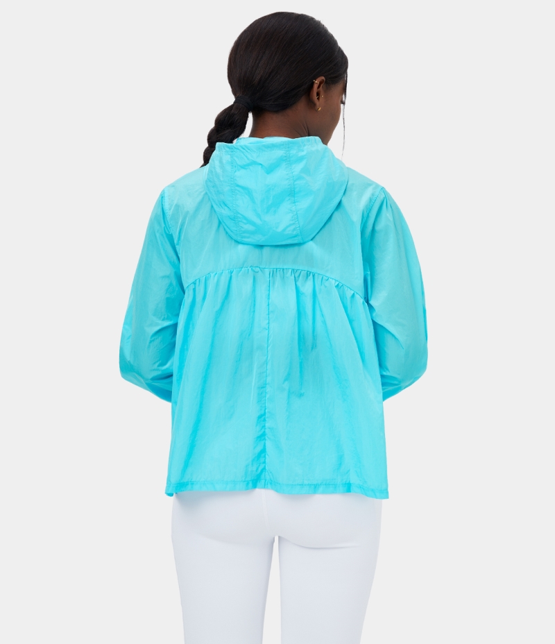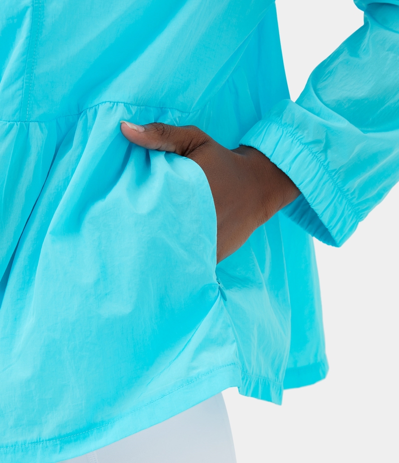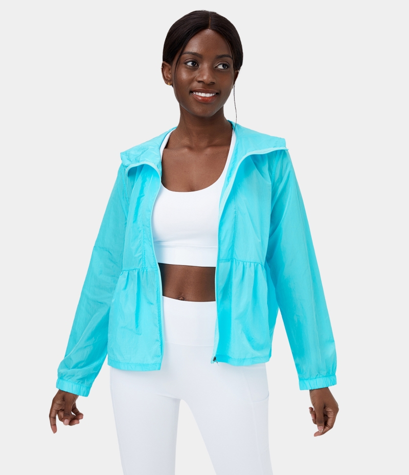 :: Halara Hooded Zipper Side Pocket Sheer Casual Jacket Women's Tops Blue Radiance | NLKBXZH-65