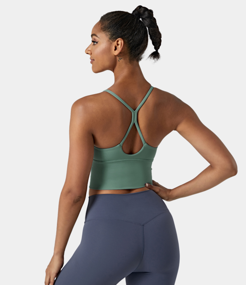 :: Halara In My Feels Backless Crisscross Cut Out Cropped Cami Women's Tops Beryl Green | PGDWBXO-76