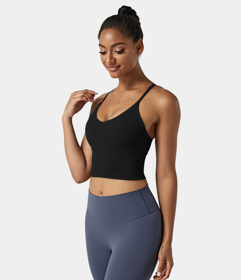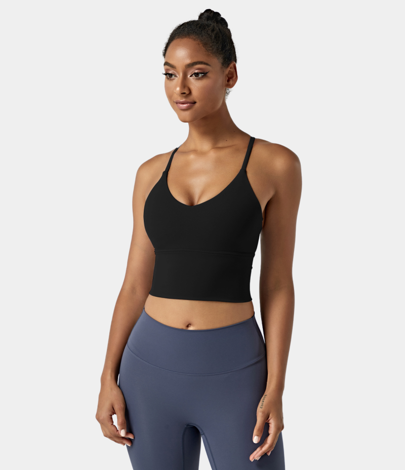 :: Halara In My Feels Backless Crisscross Cut Out Cropped Cami Women's Tops Black | RUEHSBO-34