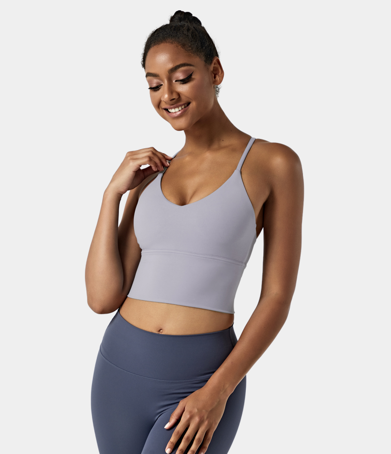 :: Halara In My Feels Backless Crisscross Cut Out Cropped Cami Women's Tops Evening Haze | JINKLGW-46