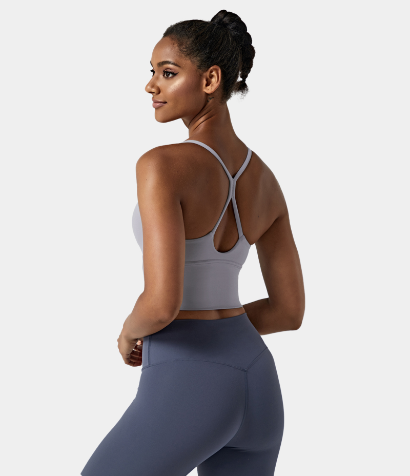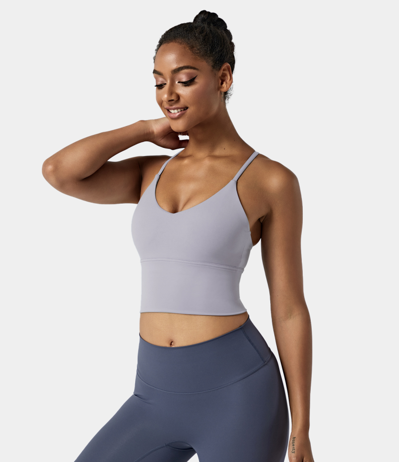 :: Halara In My Feels Backless Crisscross Cut Out Cropped Cami Women's Tops Evening Haze | SOPBXJY-43