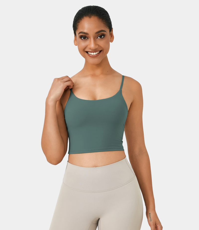 :: Halara In My Feels Basic Padded Workout Cropped Tank Women's Tops Blue Spruce | GTFSOHQ-67