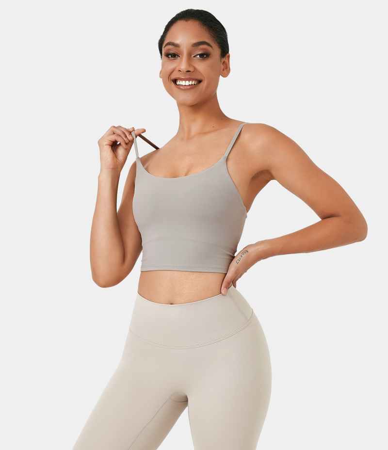 :: Halara In My Feels Basic Padded Workout Cropped Tank Women's Tops Dove | DKZPXTH-30