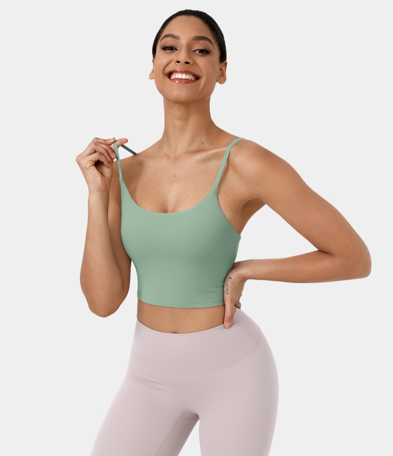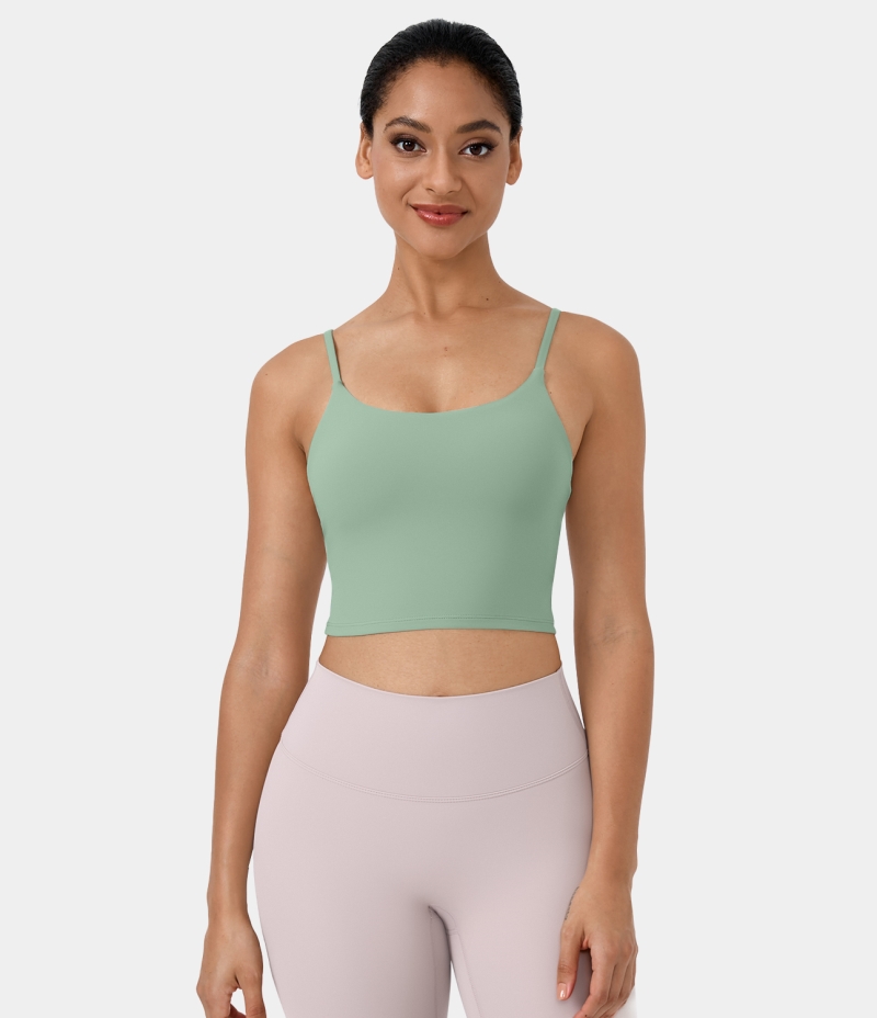 :: Halara In My Feels Basic Padded Workout Cropped Tank Women's Tops Frosty Green | LBOPKSX-01