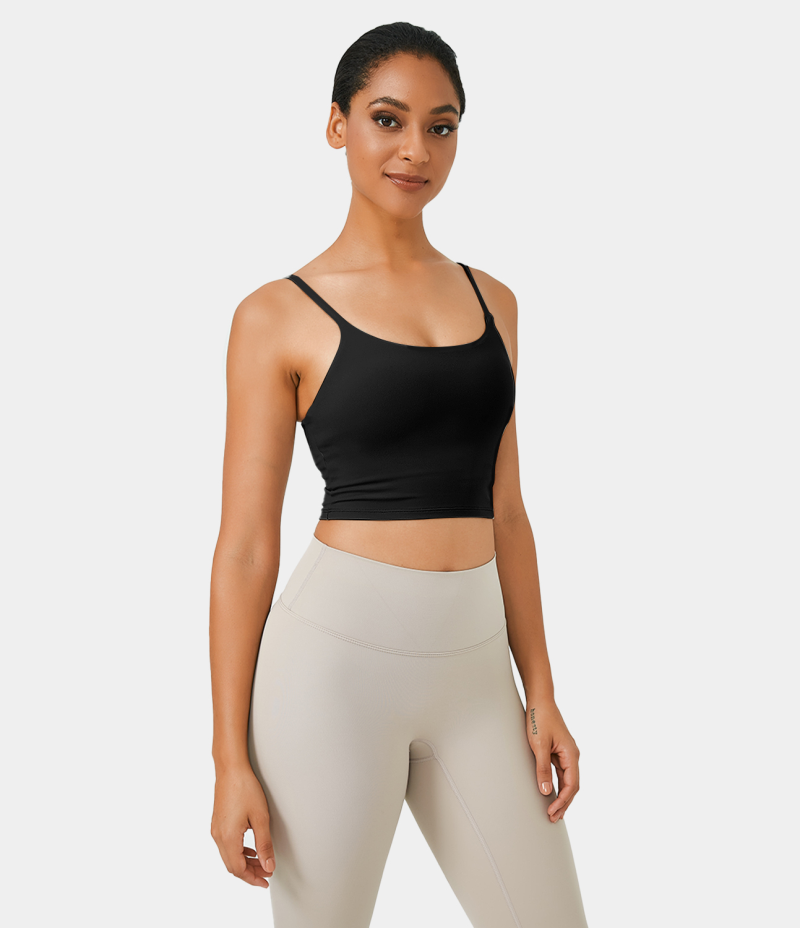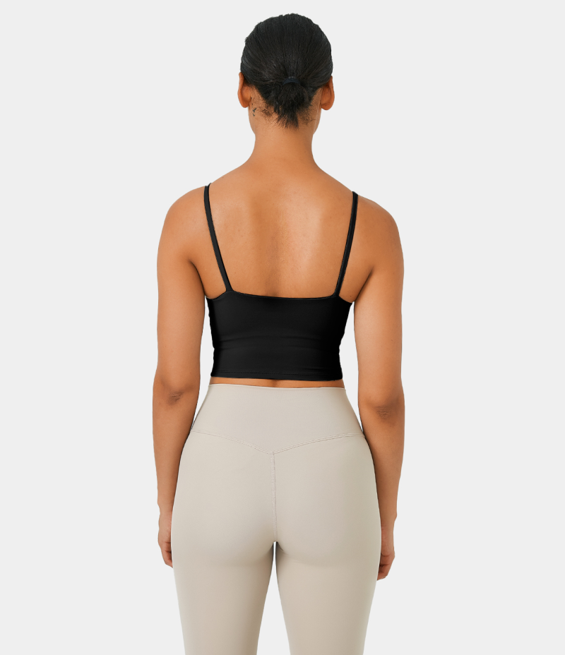 :: Halara In My Feels Basic Padded Workout Cropped Tank Women's Tops Midnight Adventure - Black | VZLTJQG-20