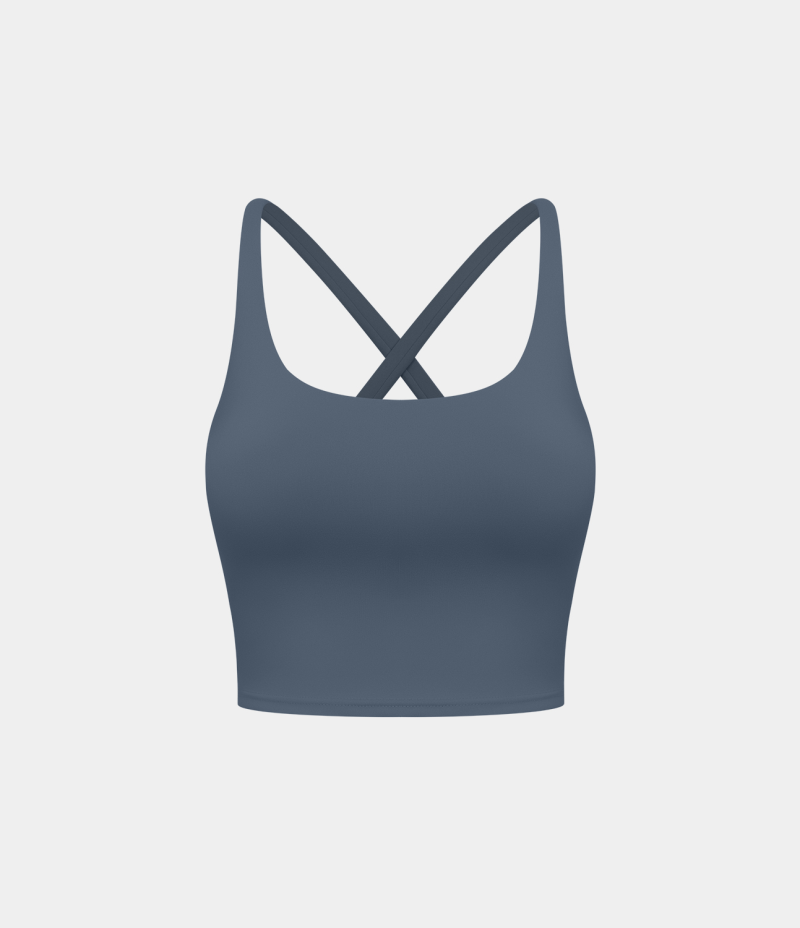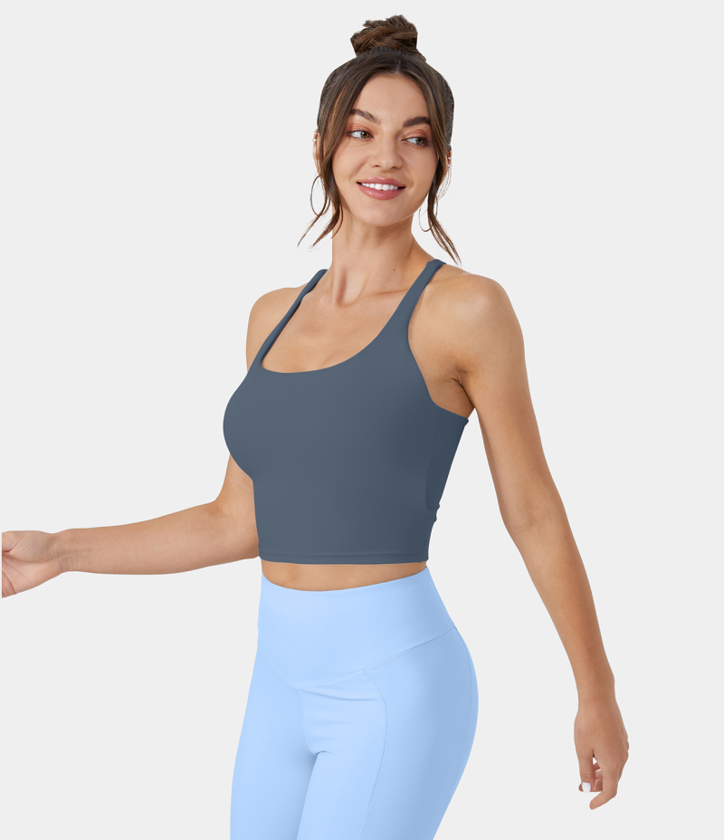 :: Halara In My Feels Crisscross Backless Cropped Yoga Tank Women's Tops Bering Sea | PLSCMQH-09