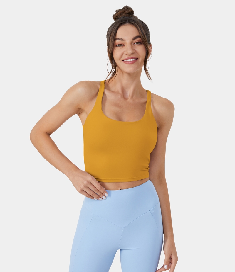 :: Halara In My Feels Crisscross Backless Cropped Yoga Tank Women's Tops Golden Yellow | UADEXVG-87