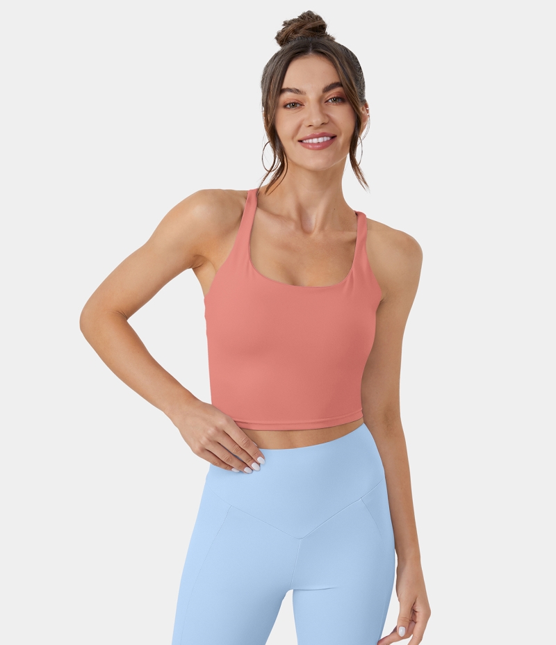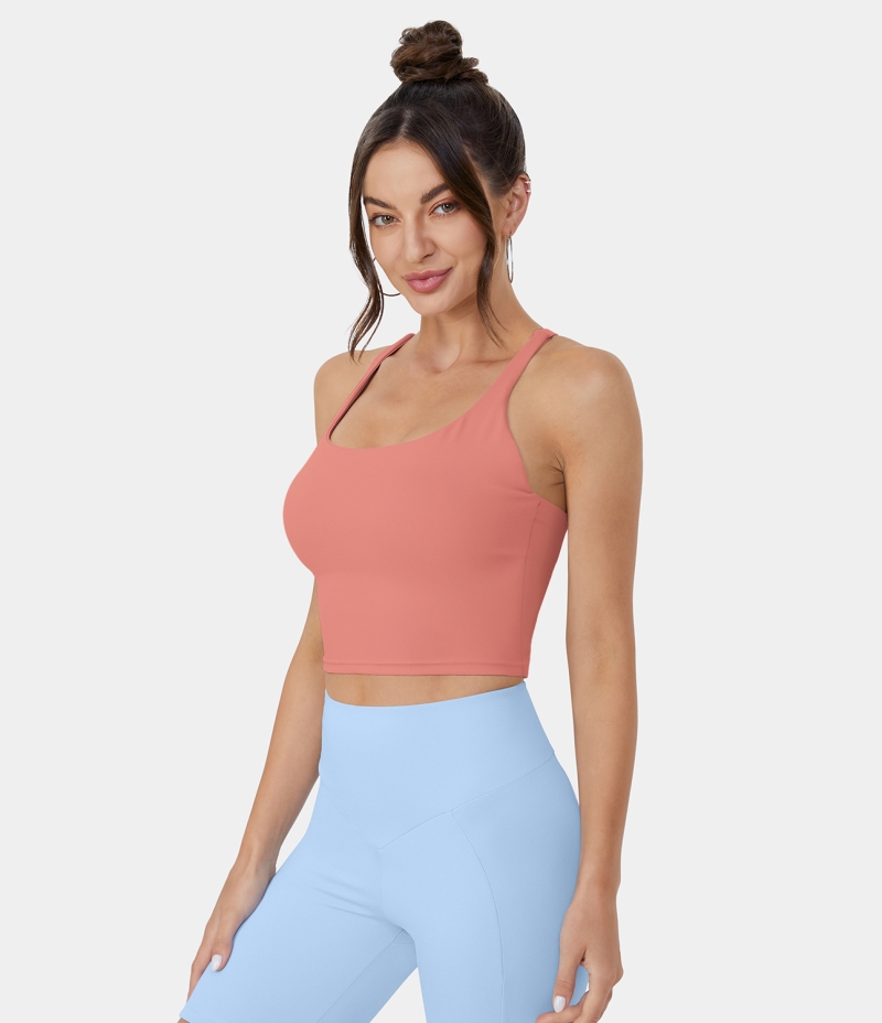 :: Halara In My Feels Crisscross Backless Cropped Yoga Tank Women's Tops Lantana | EFTPVMB-27