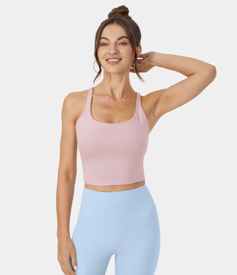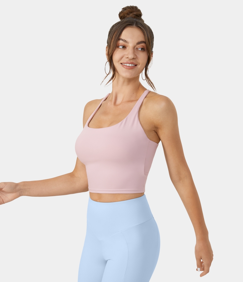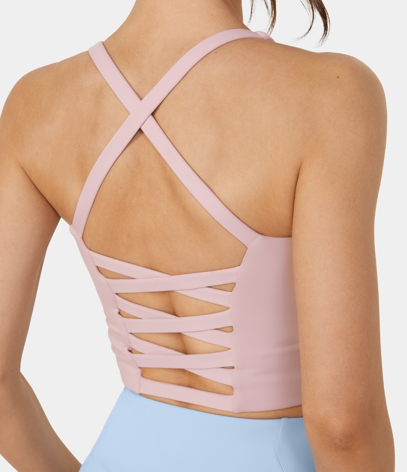 :: Halara In My Feels Crisscross Backless Cropped Yoga Tank Women's Tops Peachskin | BXRAJCE-98