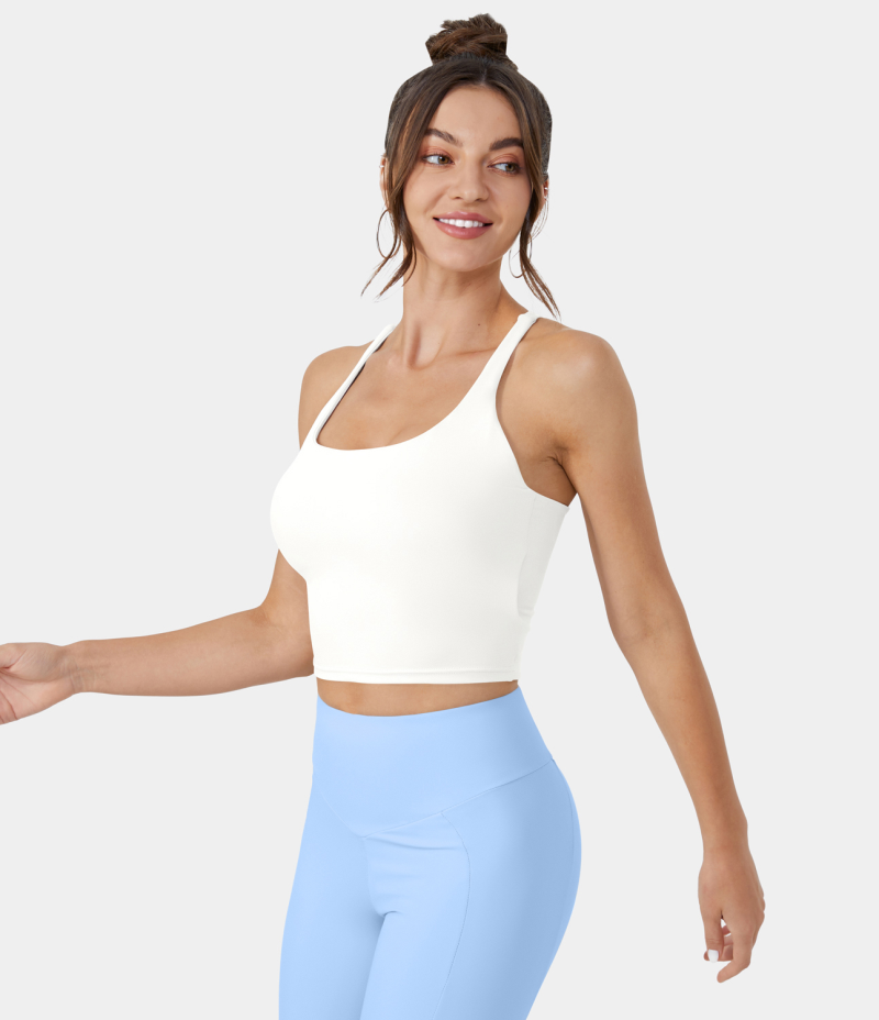 :: Halara In My Feels Crisscross Backless Cropped Yoga Tank Women's Tops White | VIDQOCM-76
