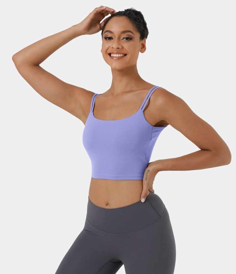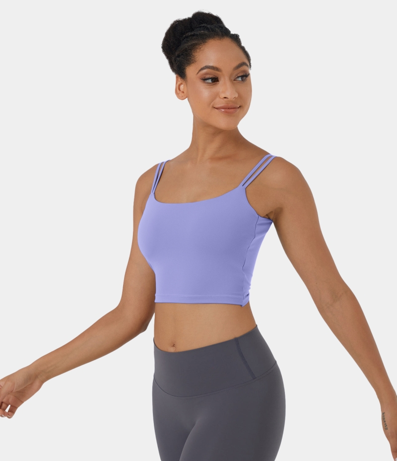 :: Halara In My Feels Double Straps Backless Twisted Workout Cropped Tank Women's Tops Baby Lavender | GKJFDEX-32