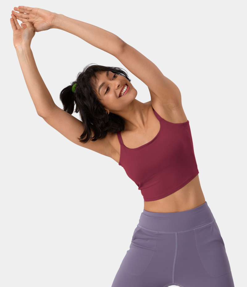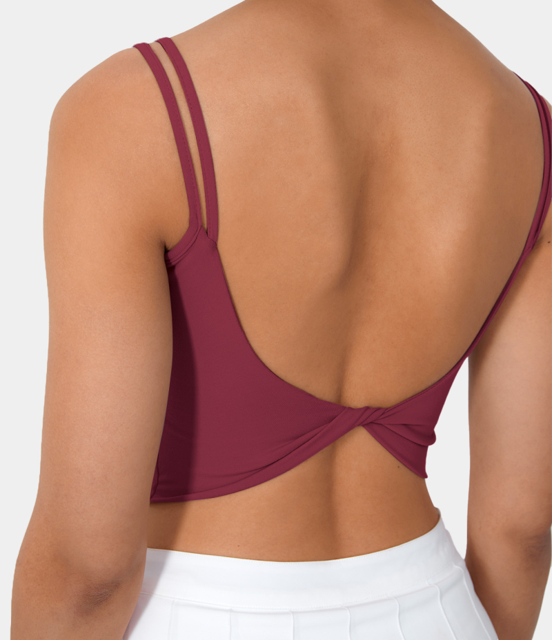 :: Halara In My Feels Double Straps Backless Twisted Workout Cropped Tank Women's Tops Cabernet | WMCQFJX-98