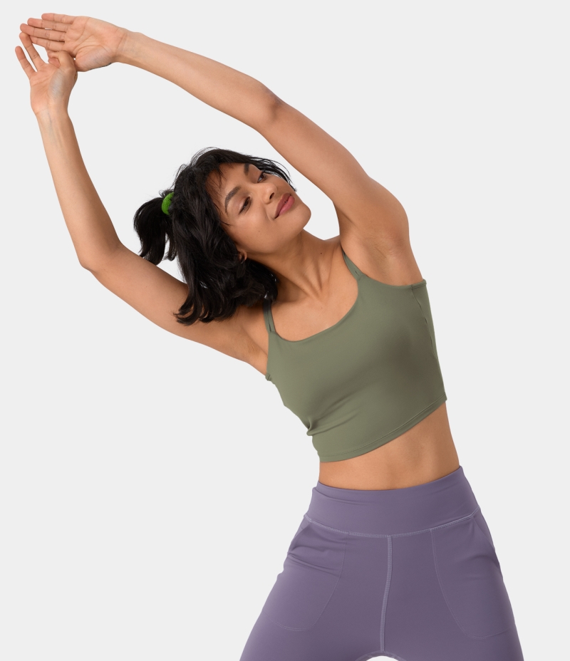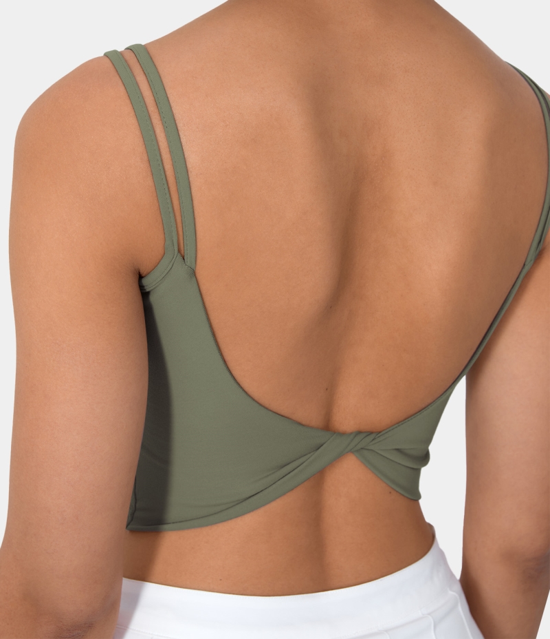 :: Halara In My Feels Double Straps Backless Twisted Workout Cropped Tank Women's Tops Dill | GREQJIU-69
