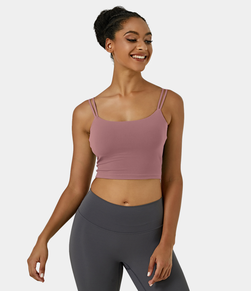 :: Halara In My Feels Double Straps Backless Twisted Workout Cropped Tank Women's Tops Lilac Purple | HZAVGLB-92