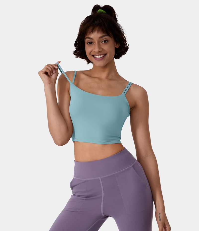 :: Halara In My Feels Double Straps Backless Twisted Workout Cropped Tank Women's Tops Porcelain Blue | XLUMJSK-52