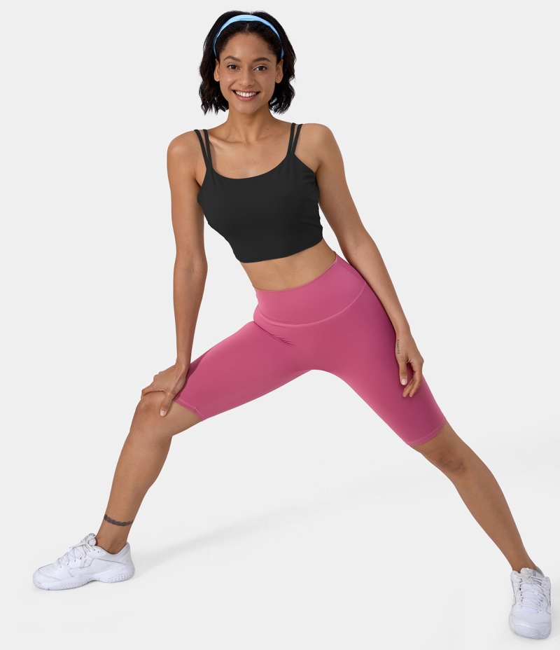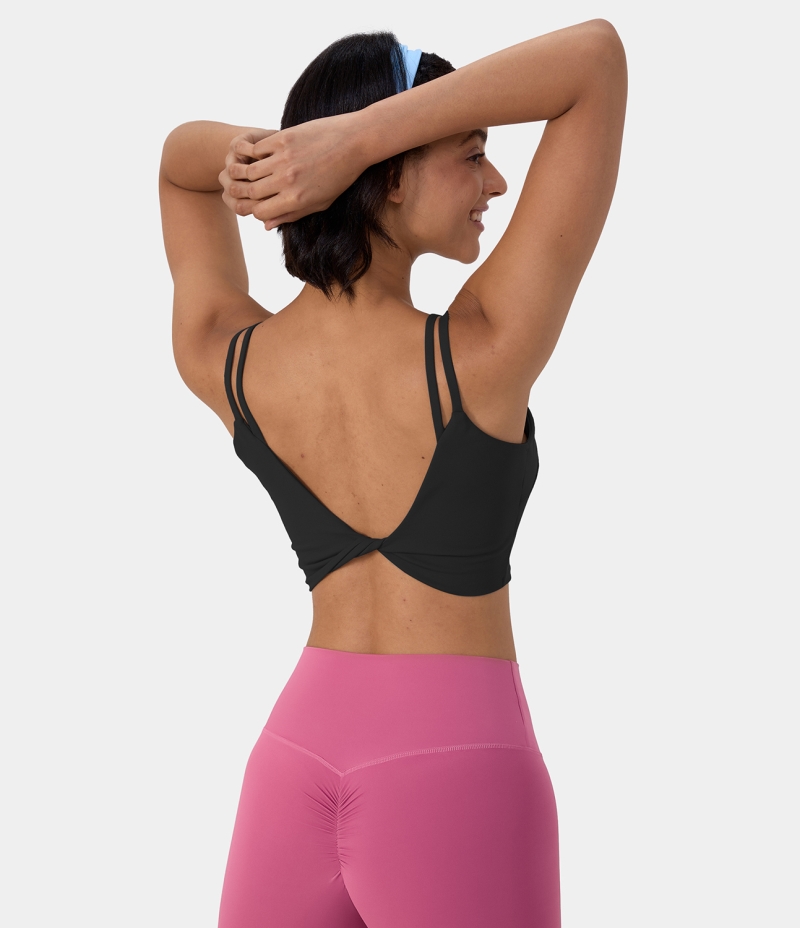 :: Halara In My Feels Double Straps Backless Twisted Workout Cropped Tank-DD/DDD/F Cups Women's Tops Black | MEXHJGT-71