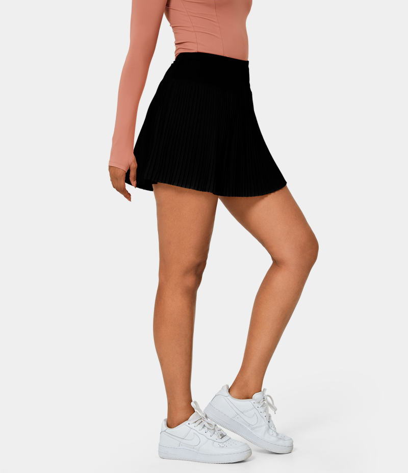 :: Halara In My Feels Everyday 2-in-1 Pleated Side Pocket Tennis Women's Skirts Black | 048923-FVI