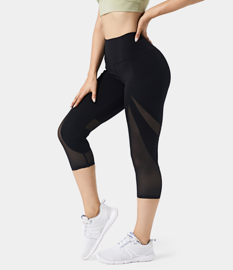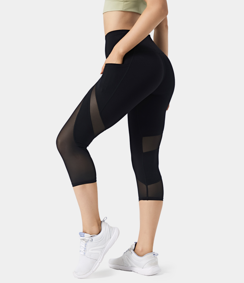 :: Halara In My Feels High Waisted Contrast Mesh Side Pocket Plain Capri Women's Leggings Black | 839042-XVN