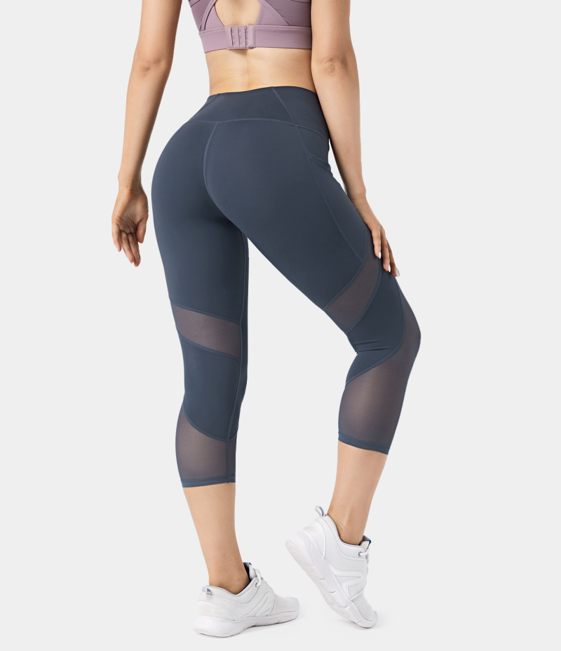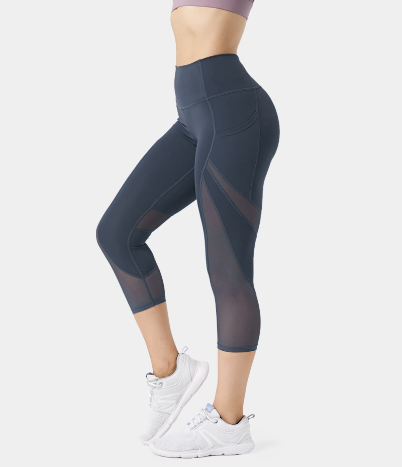 :: Halara In My Feels High Waisted Contrast Mesh Side Pocket Plain Capri Women's Leggings Blue Grey | 459382-FZI