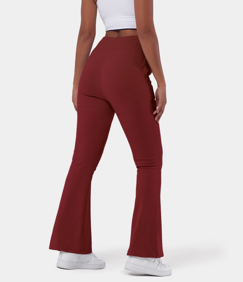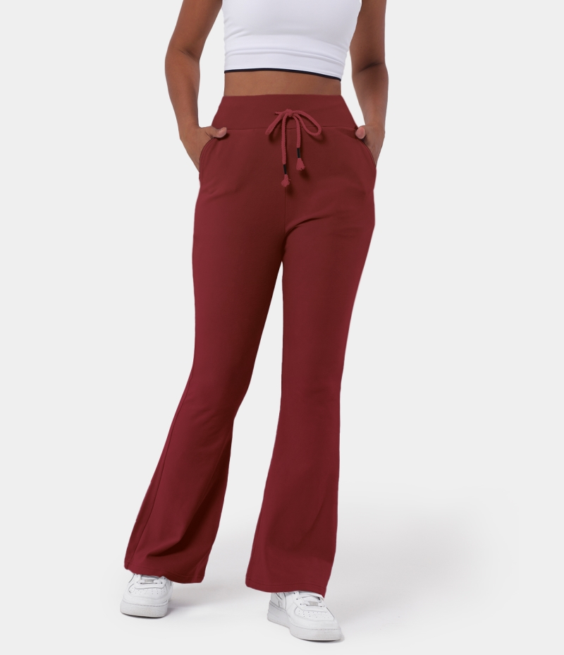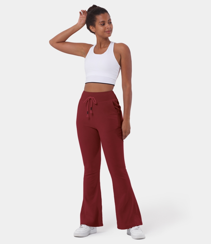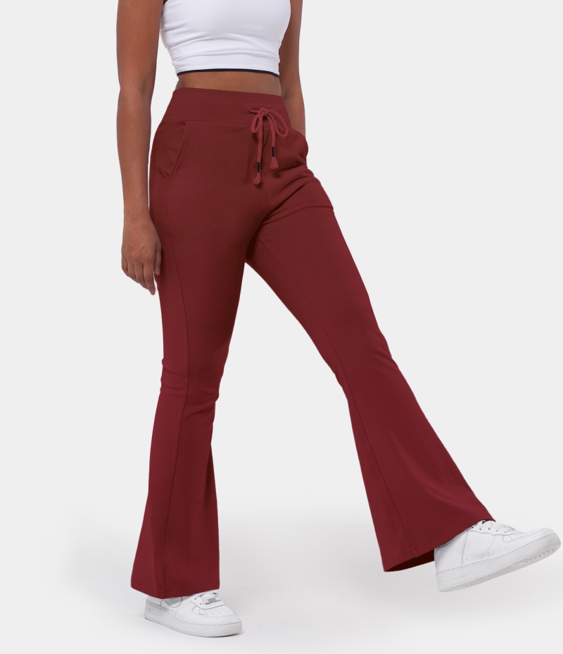 :: Halara In My Feels High Waisted Drawstring Pocket Plain Flare Long Women's Pants Blood Orange | 780935-BWA