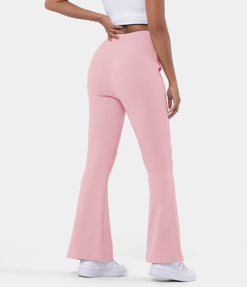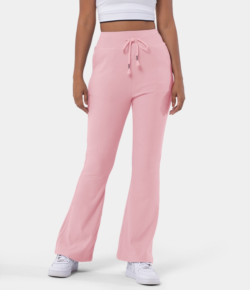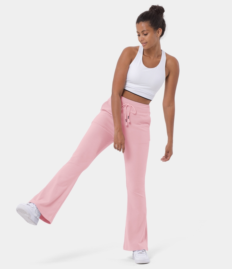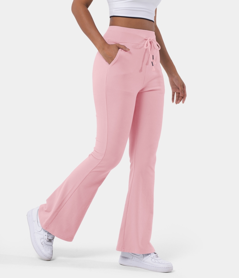 :: Halara In My Feels High Waisted Drawstring Pocket Plain Flare Long Women's Pants Sheer Rosebud | 726189-JIM