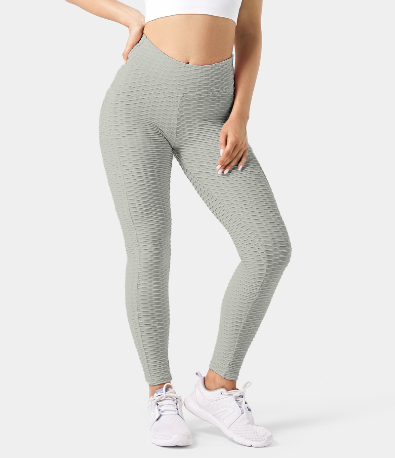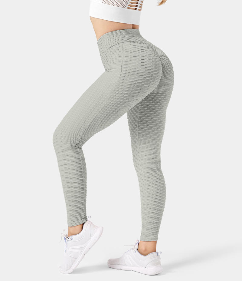 :: Halara In My Feels High Waisted Ruched Butt Lifting Honeycomb Yoga 7/8 Women's Leggings Aloof Grey | 762934-LEZ