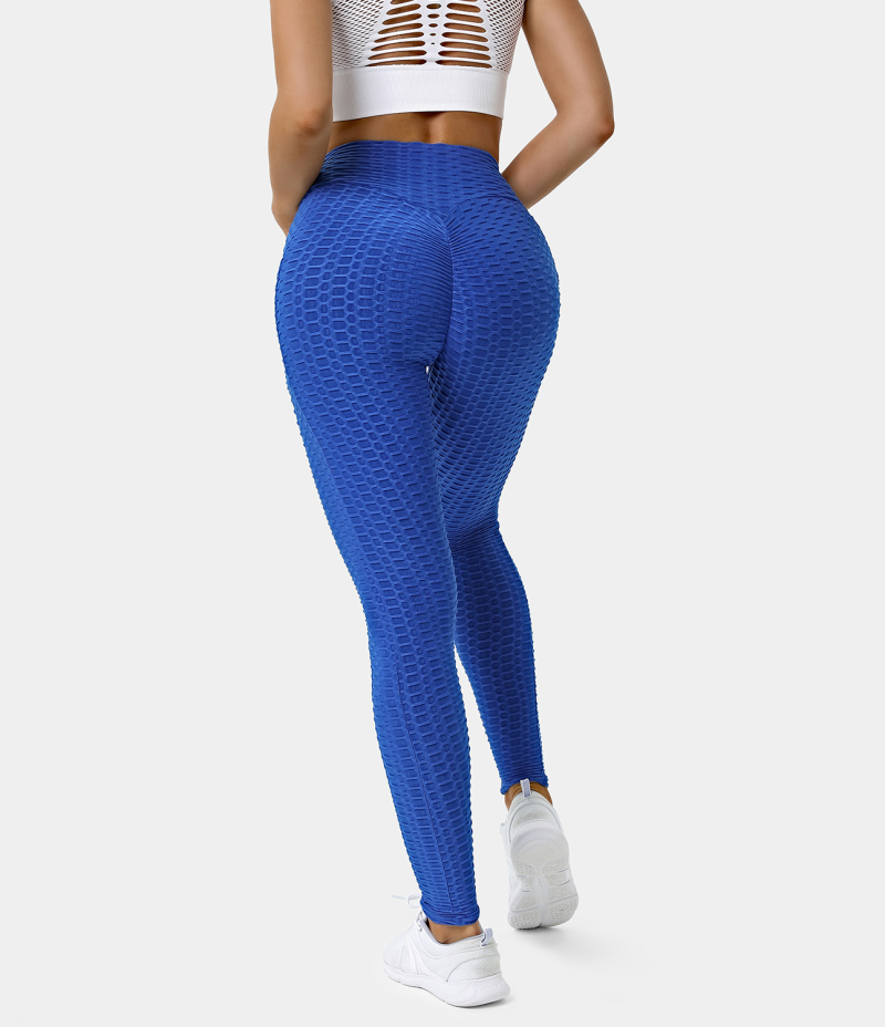 :: Halara In My Feels High Waisted Ruched Butt Lifting Honeycomb Yoga 7/8 Women's Leggings Cobalt Blue | 319805-BJX
