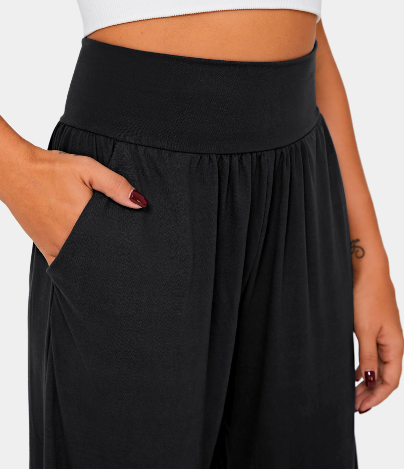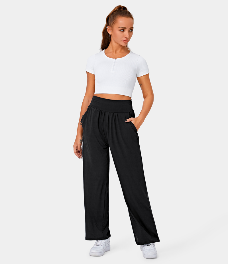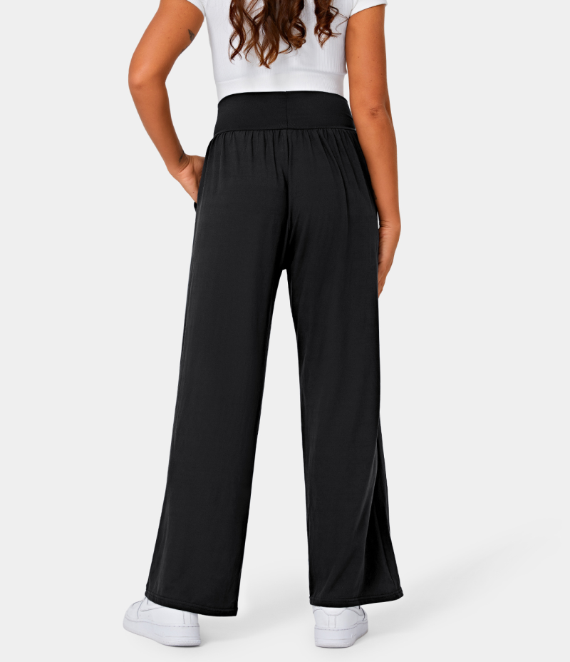 :: Halara In My Feels High Waisted Side Pocket Plain Wide Leg Women's Pants Black | 586392-QNK