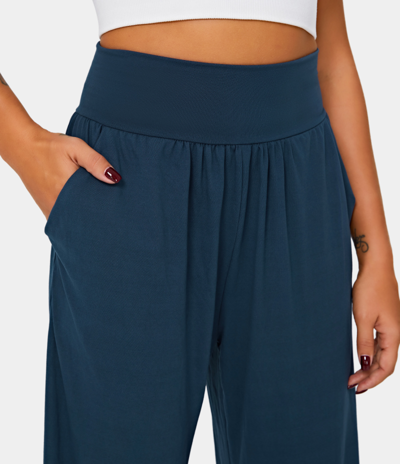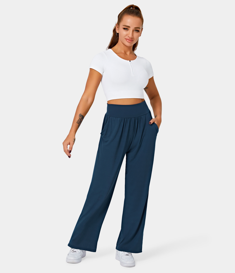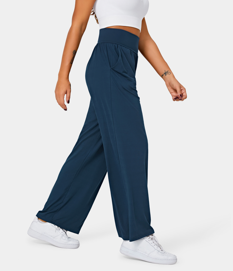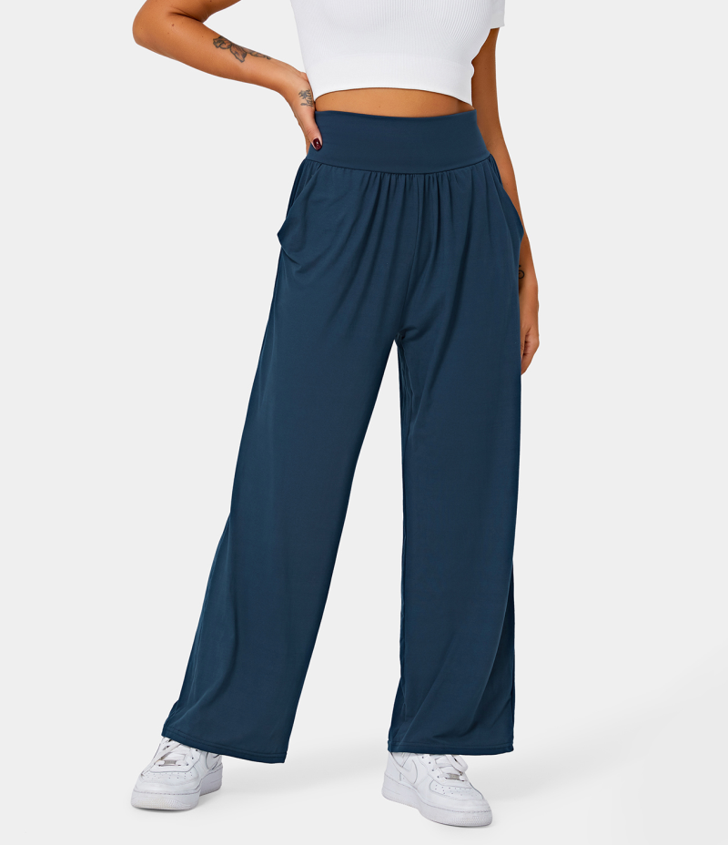 :: Halara In My Feels High Waisted Side Pocket Plain Wide Leg Women's Pants Oxford Blue | 358971-RHG
