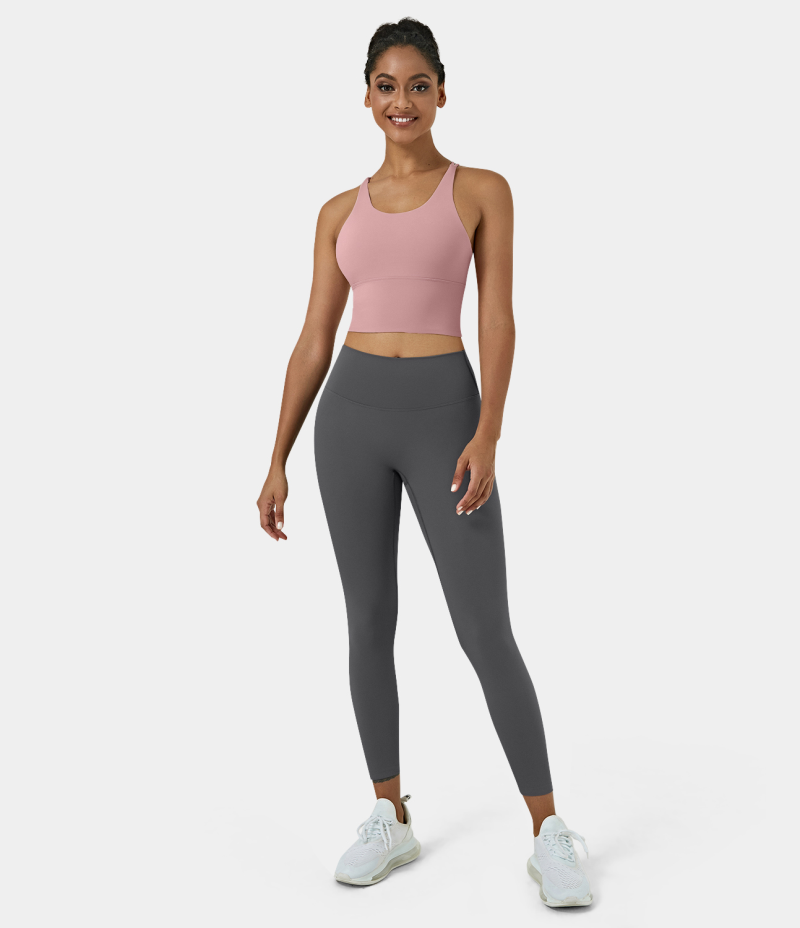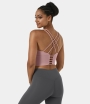 :: Halara In My Feels Low Support High Neck Longline Yoga Sports Bra Women's Tops Flower Child - Baby Pink | CEPJODW-46