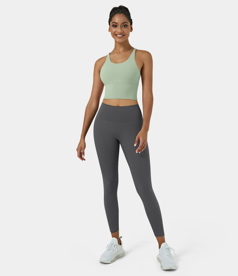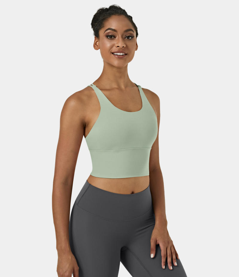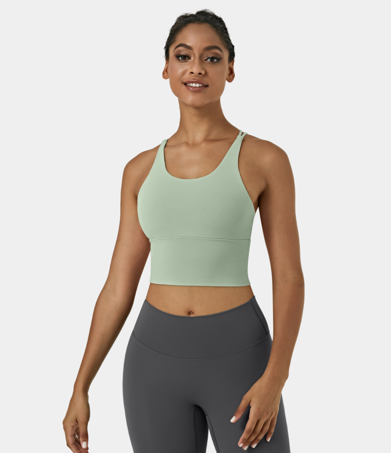 Halara In My Feels Low Support High Neck Longline Yoga Sports Bra Women's Tops Ghostin' - Celadon | TEBNJIR-41