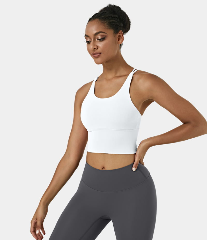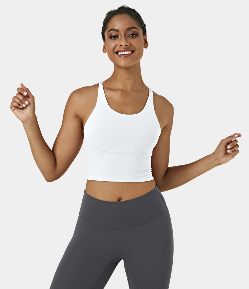 Halara In My Feels Low Support High Neck Longline Yoga Sports Bra Women's Tops Ice Princess - White | HOVJMXA-47